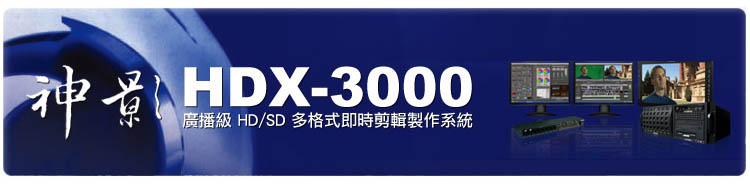 神影 HDX-3000 系統,是針對支援新一代新聞廣播專業用的記錄媒體 XDCAM HD / EX 光碟與 P2 HD 記憶卡而設計,支援 MXF 、